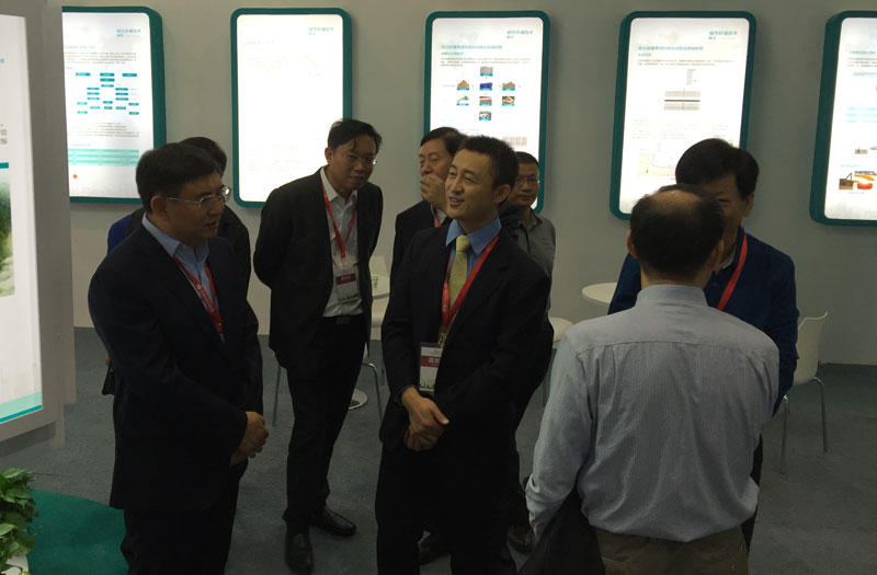 10月13日,展覽會正式拉開帷幕,開幕式結(jié)束之后,江蘇省住建廳副廳長宋如亞、蘇州市市政府副秘書長顧海東、中環(huán)協(xié)理事長肖家保一行蒞臨高能環(huán)境展臺視察,高能環(huán)境現(xiàn)場人員在市場總監(jiān)和市政固廢技術(shù)中心總工帶領(lǐng)下向視察領(lǐng)導(dǎo)講解我們在垃圾填埋場封場領(lǐng)域的核心技術(shù)。高能環(huán)境的擴容技術(shù)、生態(tài)封場技術(shù)、柔性垂直防滲技術(shù)能夠有效提高垃圾填埋場的土地資源化利用、減少其對周邊環(huán)境的污染。