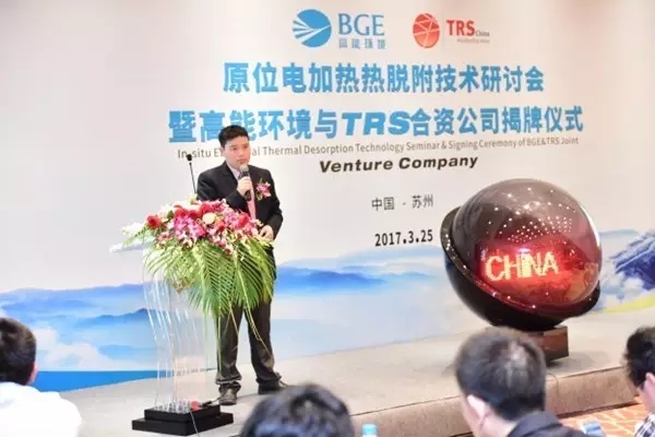 在與會(huì)嘉賓及行業(yè)專家共同見證下,高能環(huán)境總經(jīng)理陳望明與美國(guó)TRS總裁Brett共同啟動(dòng)揭牌儀式,宣布合資公司正式成立。陳望明總經(jīng)理致辭表示,此次高能環(huán)境與全球領(lǐng)先的美國(guó)TRS公司強(qiáng)強(qiáng)聯(lián)合,成立合資公司,將為我國(guó)有機(jī)物污染場(chǎng)地提供優(yōu)質(zhì)解決方案,大力提升我國(guó)污染場(chǎng)地修復(fù)實(shí)施技術(shù)和管理水平。Brett總裁發(fā)表演講,介紹了TRS公司概況、原位電加熱熱脫附技術(shù)及案例應(yīng)用,他表示此次與高能環(huán)境達(dá)成戰(zhàn)略性合作,加強(qiáng)國(guó)際之間技術(shù)交流,將共同承擔(dān)和解決環(huán)境污染問題,迎接新挑戰(zhàn)。